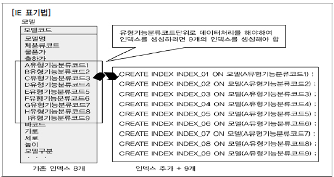 - 유형기능분류코드 각각에 대해 인덱스를 생성해야하므로 총 9개의 인덱스 생성 필요
