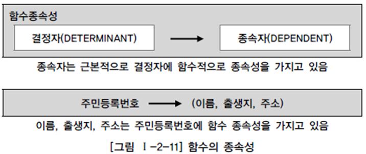 - 이 때 기준 값을 결정자라 하고 종속되는 값을 종속자라고 한다.